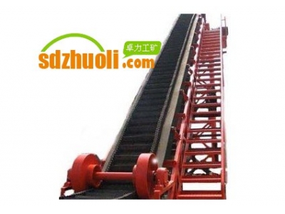 DJ型大傾角皮帶輸送機(jī)(以下簡(jiǎn)稱“大傾角”)具有通用帶式輸送機(jī)結(jié)構(gòu)簡(jiǎn)單、運(yùn)行可靠,維修方便等優(yōu)點(diǎn),具有可大傾角(90度垂直)輸送、結(jié)構(gòu)緊湊、占地少等特點(diǎn),因而是大傾角(或垂直)輸送的理想設(shè)備。